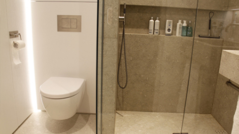 Wij nemen u alles uit handen en zorgen voor de sloopwerk-zaamheden, verwarming, elektra, ventilatie, tegelwerk, stucwerkzaamheden en aanpassing van het leidingwerk zoals riolering, koud- en warmwaterleidingen.